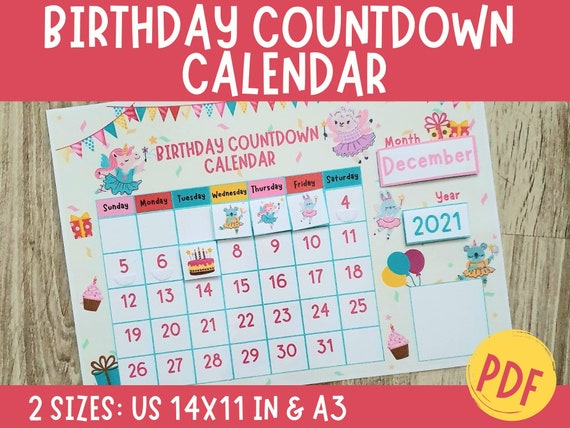 Birthday Countdown Calendar For Kids Ballerina Birthday Etsy